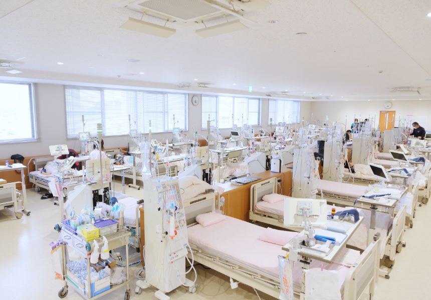 とうま内科は、透析台数30台を有した透析クリニックです。 災害などの停電用に自家発電機や感染症の方用の隔離透析室など、 透析治療を安心して受けいただける環境をご用意しております。
